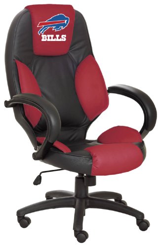 Tilt Tension Adjustment & Single Lever Seat Height Control with Locking Mechanism. Exclusively Licensed with the NFL High Back Executive Office Chair. Officially Licensed the usage of Top Grain Leather in the Team Colors Contoured Lumbar Support further padded seat for maximum alleviation. Styled and manufactured to replicate a sports automotive bucket seat.